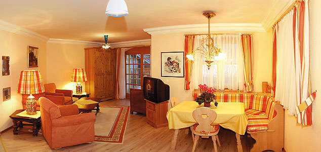 Unsere Wohnung im Untergeschoß (bis 5 Personen) bietet Ihnen alle Annehmlichkeiten für einen rundum erholsamen Urlaub. Vollausgestattet und mit ca. 67qm ist sie Ihr optimales Urlaubsnest in den bayerischen Bergen. Sehr geschmackvoll ausgestattetes Wohnzimmer mit gemütlicher Essecke und einer edlen Küchenzeile, separates Schlafzimmer mit 3 Betten und ein schönes Bad zeichnen diese Wohnung aus. Genießen Sie die herrliche Sicht von unserer Terrasse in die umliegende Bergwelt. Alle Preise sind inkl. Wäsche, Endreinigung und Kurtaxe